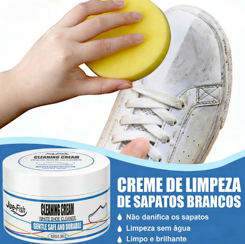 👟🧽 Creme de Limpeza para Tênis Brancos Jue-Fish com Esponja ⚡ Limpeza Rápida | 🛡️ Segura